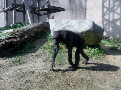 円山から帰ってきてすぐ次の日曜日に行ってきました、 福岡市動植物園。(4月24日) 円山のチンパンンジーレディのお兄さんがここにいるそうなので会ってみたかったのです。 ちょうどエンリッチメントのイベントがあっていて チンパンジーに喜んでもらう為に大きな枝に食べ物などをつけて放飼上のあちこちに取り付けて楽しませようという催しでした。 この子は2匹いるメス(母と娘)のうちのどちらか。 多分 お母さんの方? この子もメスでもっとちょうだいって言っている姿が可愛かった。 きっと飼育員の方がいらっしゃったのでそちらへのアピールだったのでしょう!? 最初この子がレディのお兄さんのボンかと思っていたのですが、飼育員の方に伺ったところ別のもっと昔からいたオスでした。 やはりオス2頭のおりあいが悪く離しているそうです。 今 ボンの娘がヒート中で、ゆえにボンだけ離されて室内にいるそうです。 ときおり室内から暴れて壁を蹴っているいるようなド~ンという音が聞こえてきていたので かなり怒っているようで・・・。 さっそく会いに行ってみました。 室内でぼやけたりぶれたりで、やっと撮れた一枚です。 レディのお兄ちゃんのボン君。20歳くらい! 実に立派なオスです。 この子は亜種でいえば”ヒガシ”で、メスは”チュウオウ”。 亜種の保存を考えれば繁殖はもうしないのではないでしょうか? もともとのオスはニシチンバンジーで、 日本にはかなり多くの血族がいるそうです。 こんな立派なボン君がいるのだから同じ亜種のお嫁さんを迎えられたらいいのにと思ってしまいました。 福岡市動物園のウェブサイトを見ると、新しい放飼場を今作っているそうなので 実現するかもしれないと思わず期待してしまいました。 隣にはニシローランドゴリラもいたのですが、たった一匹でとても寂しそうに見えました。 何しろディズニーのアニメ「ターザン」が何より大好きなもので、やはりゴリラは家族愛なしには語れません。 上野でコモモちゃんが生まれていることだけでも素晴らしいことなんだろうなと思いますが・・・。 いろいろ見て回ったのですが、Bellパパが何よりはまったのがこのレッサーパンダ。レッドパンダともいうそうです。 北海道の円山の双子ちゃんたちはもう大人と同じ大きさになっていたのですが、赤ちゃん時代の双子ちゃんが絡まる姿は例えようなく可愛いかったです。 このテッカ君はそろそろちょうどお年頃の若オス。 5月には多摩からマリモちゃんというメスがお嫁さんに来ました♪ 来年が実に楽しみです。 テッカ君は円山のココちゃんの弟で、顔がよく似ています。 ずっと木の上で寝ていたテッカ君! Bellパパは枝で隠れていない顔を写すためにかなりの時間粘っていてようやく撮れた一枚がこの2枚目です。 さあ、今度はマリモちゃんに会いに行かなくっちゃ♪ 長崎の動物園は友達と回る約束をしているけれど、Bellパパもきっともし赤ちゃんが産まれたら行きたがるでしょう。 土日はワンコのシャンプーもあるし、忙しくなりそうです。 |